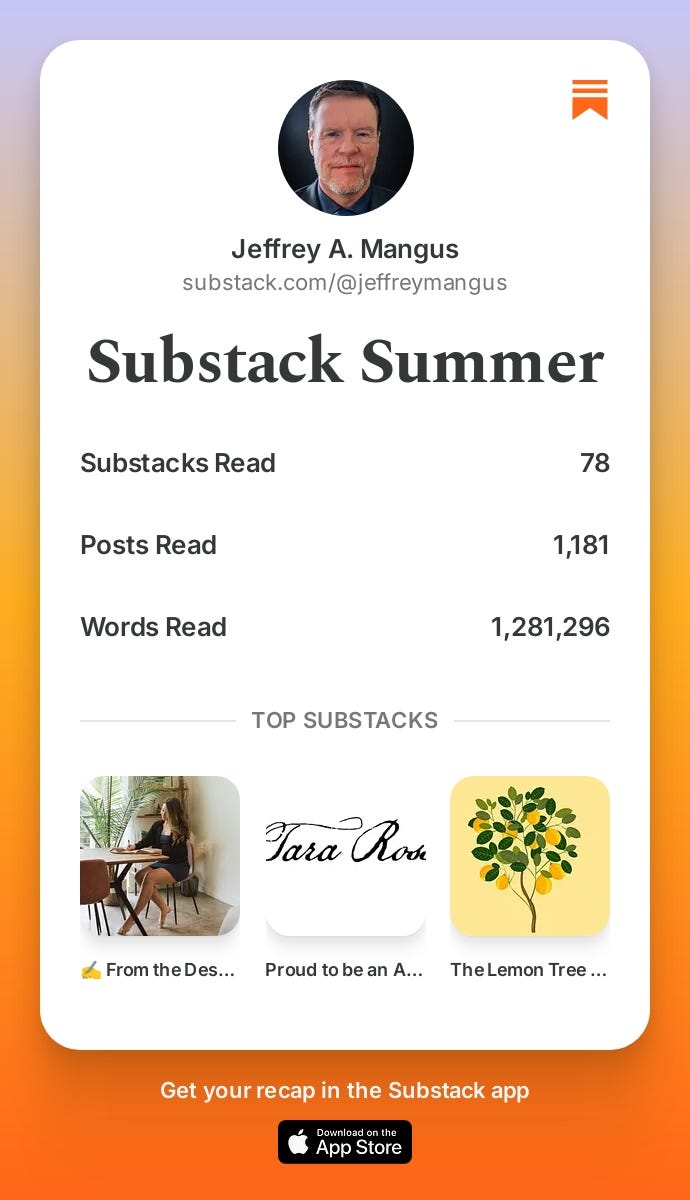 You can see your own summer recap in the Substack app. I’d love to see what you’ve been reading.